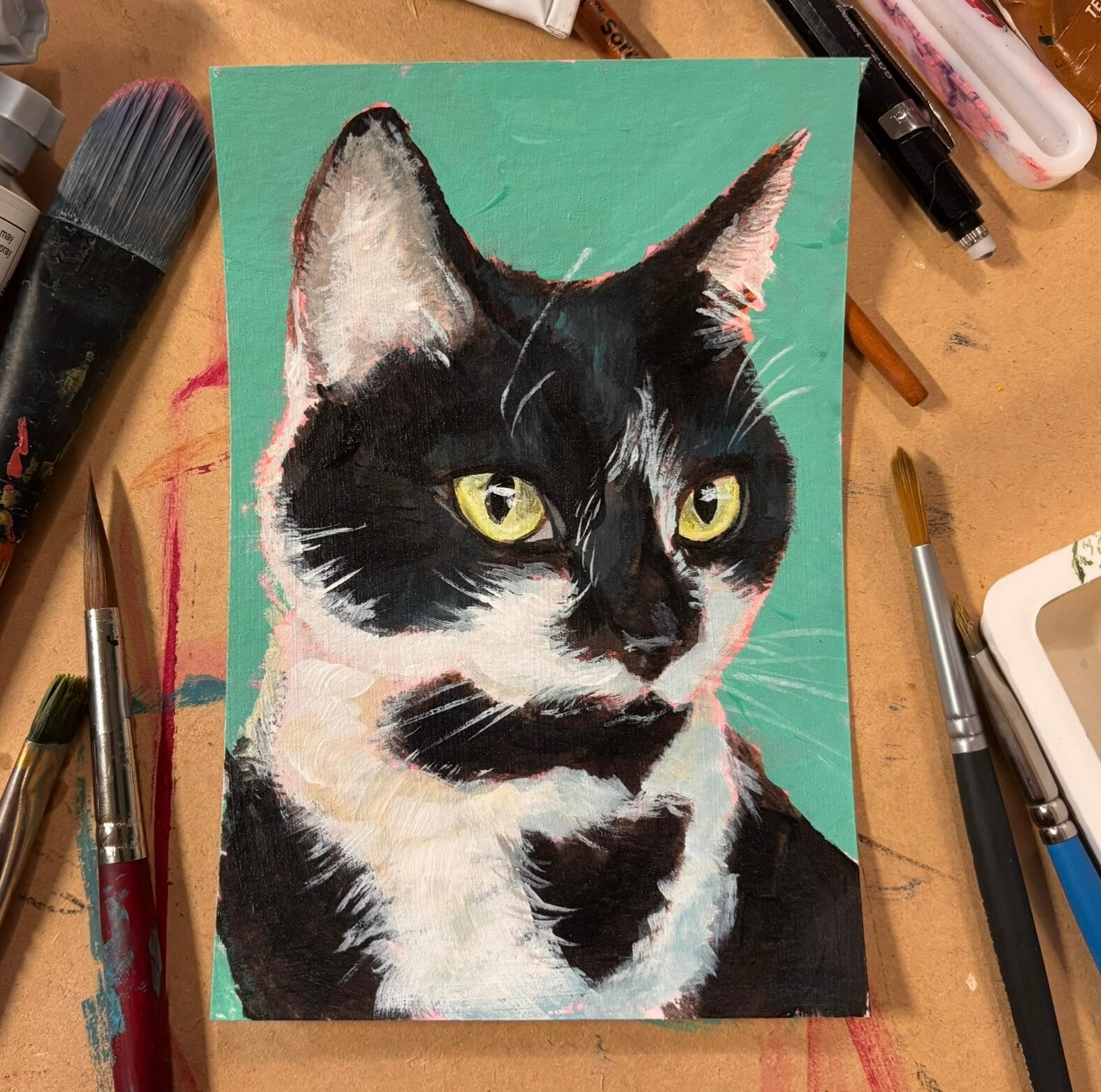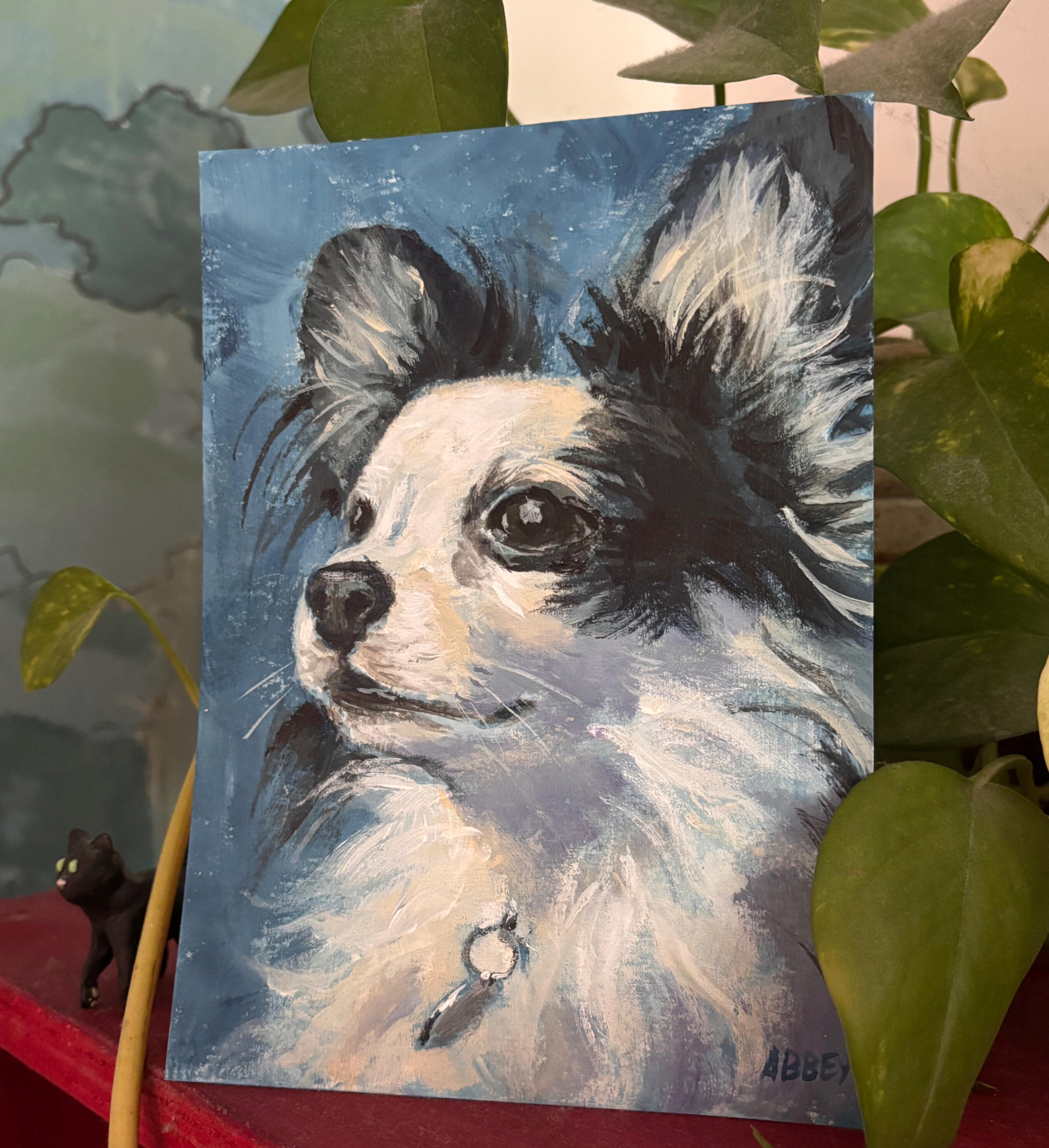 I’m Abbey, (affectionately known as Ab) an artist in many avenues. I’ve worked as an illustrator, painter, muralist and under a handful of other artistic titles. I live in the coastal Pacific Northwest with my little family and enjoy watching the wide range of local wildlife on our property, kids included.Painting pet portraits combines my love of animals and painting and it ensures your pet’s smile will bring you joy forever. Let’s get in touch!
